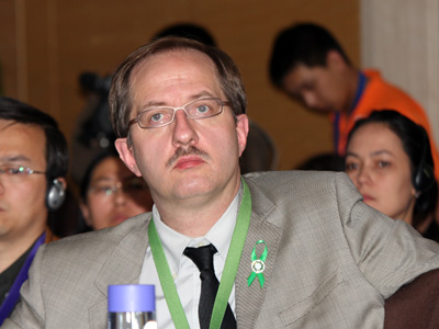 2009年4月22日,由中國企業家俱樂部和道農研究院、《綠公司》雜志主辦的“2009中國綠色公司年會”在北京索菲特大飯店召開。圖為法國政府投資部大中華區總裁投資參贊Pascal Gondrand在“投資自然:財富新動力”論壇。