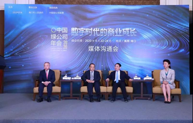 2020年1月6日,2020中國綠公司年會媒體溝通會在海南召開,海南省委常委、常務副省長毛超峰,中國企業家俱樂部理事長、新奧集團董事局主席王玉鎖,海口市人民政府市長丁暉,依文集團董事長夏華、中國企業家俱樂部秘書長程虹出席了媒體溝通會,海口市商務局局長蔡俏主持了會議。約50位媒體記者出席了今天的媒體溝通會。