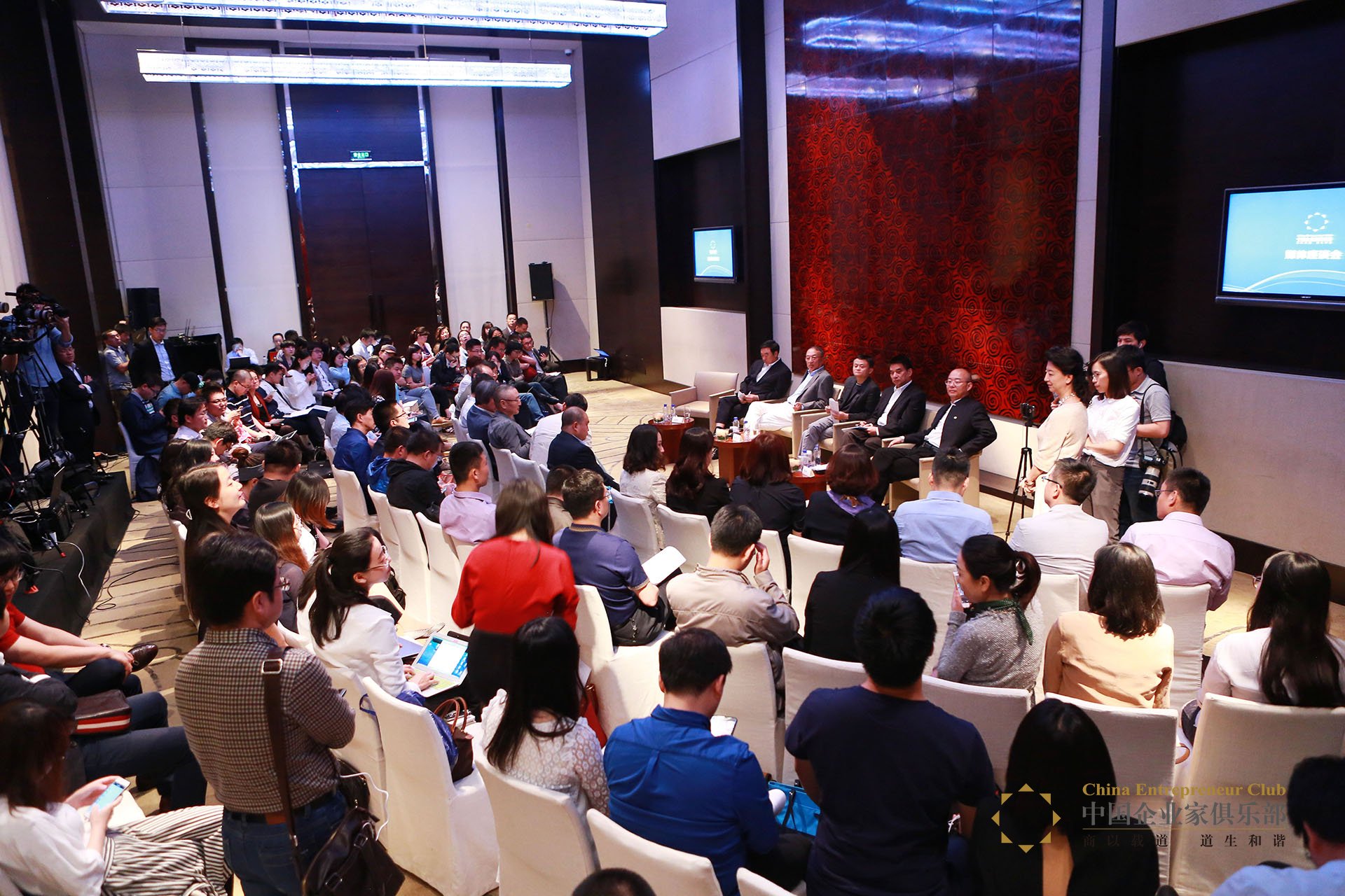 2016年5月8日,中國(guó)企業(yè)家俱樂(lè)部在北京舉行媒體座談會(huì)。馬云、柳傳志、馬蔚華、劉永好、劉東華出席,并與130余位媒體記者座談。中國(guó)企業(yè)家俱樂(lè)部秘書長(zhǎng)程虹主持了會(huì)議。 2016年5月8日,中國(guó)企業(yè)家俱樂(lè)部在北京舉行媒體座談會(huì)。中國(guó)企業(yè)家俱樂(lè)部主席、阿里巴巴集團(tuán)董事